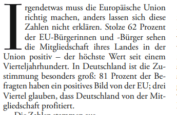 ARTIKEL ÜBER DAS ANSEHEN DER EUROPÄISCHEN UNION (EU) IN DER BEVÖLKERUNG: „EIN STERNCHEN FÜR EUROPA” AUS: ZEIT (49/2018)