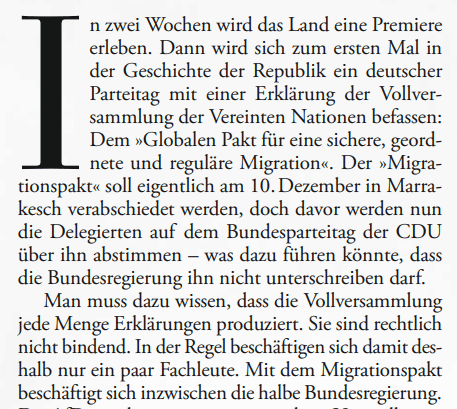 ARTIKEL ÜBER DIE DEBATTE IM BUNDESTAG ÜBER DEN MIGRATIONSPAKT: „UNTER KEINEM GUTEN STERN” AUS: ZEIT (49/2018)