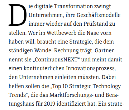 EIN ARTIKEL ÜBER AKTUELLE TRENDS: „ZEHN DISRUPTIVE TECHNOLOGIETRENDS FÜR 2019” AUS: COMPUTERWOCHE (19.11.2018)