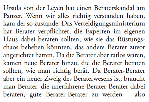 ARTIKEL ÜBER DIE VERTEIDIGUNGSMINISTERIN URSULA VON DER LEYEN: „WER BERÄT BERATER-BERATER?” AUS: ZEIT (49/2018)