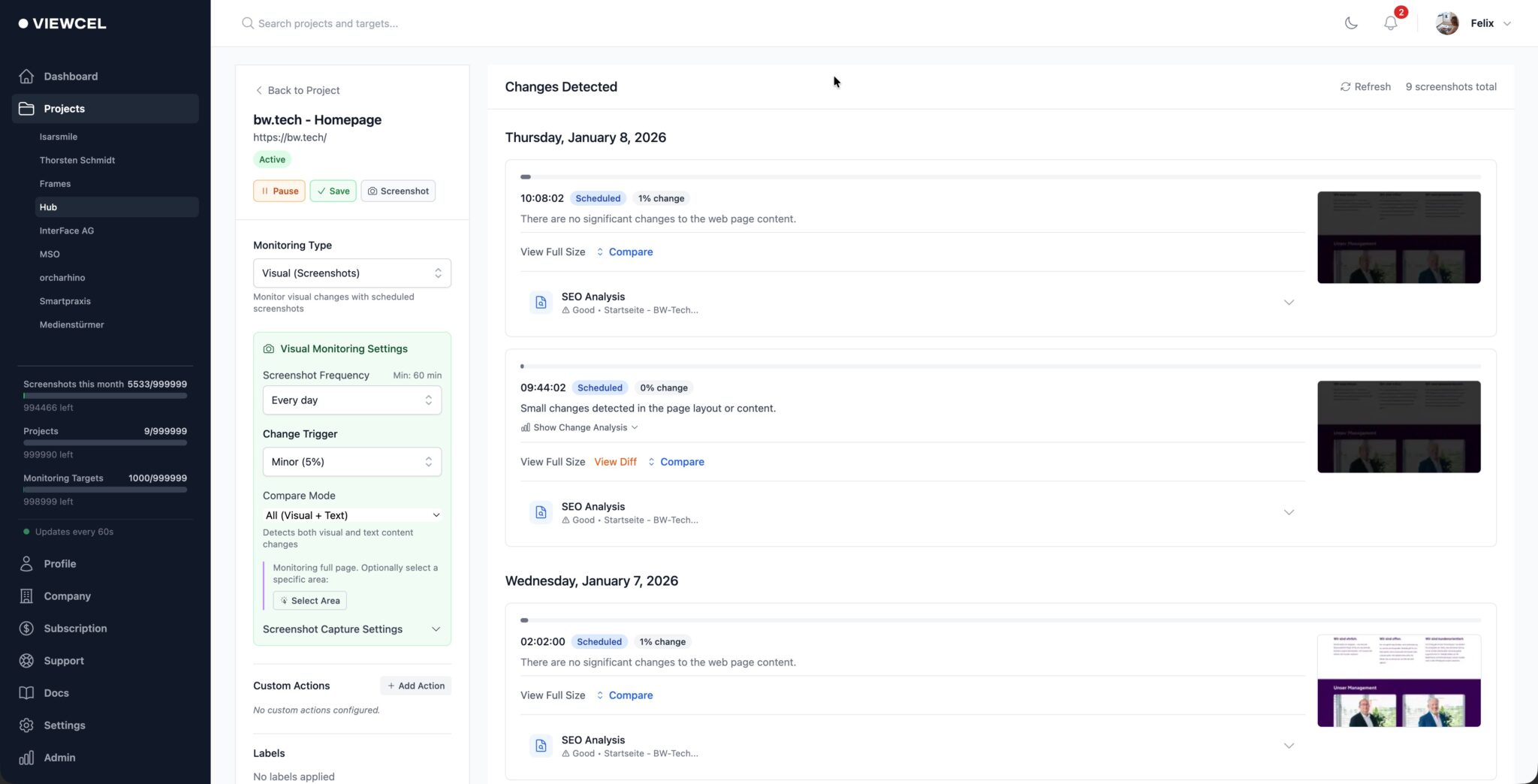 - Überwache deine eigene Website oder die der Konkurrenz.