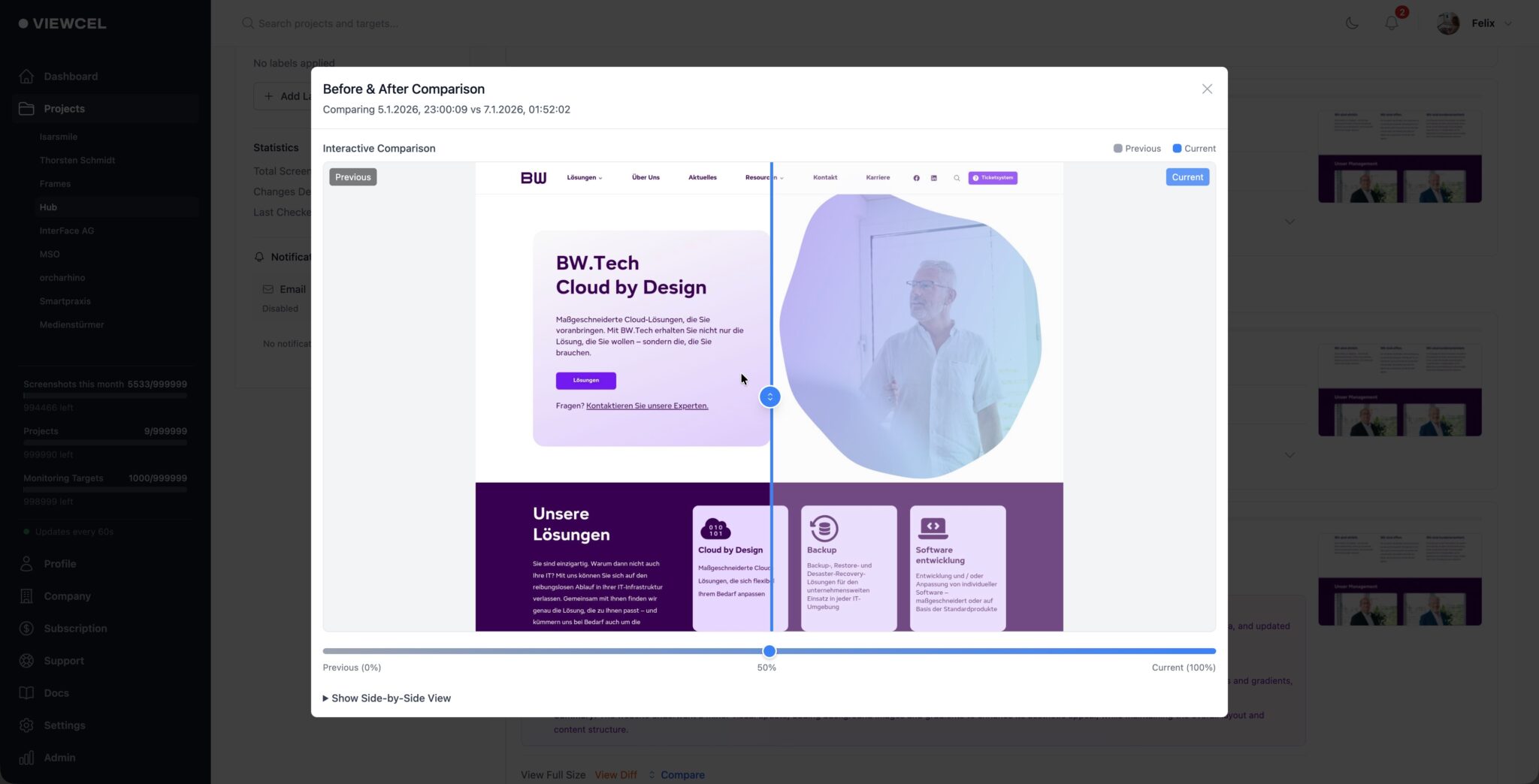 Viewcel schickt dir nicht einfach nur ein „Vorher-Nachher-Bild“. Unsere integrierte AI-Engine scannt jeden Pixel, analysiert das Layout und kategorisiert Änderungen intelligent: