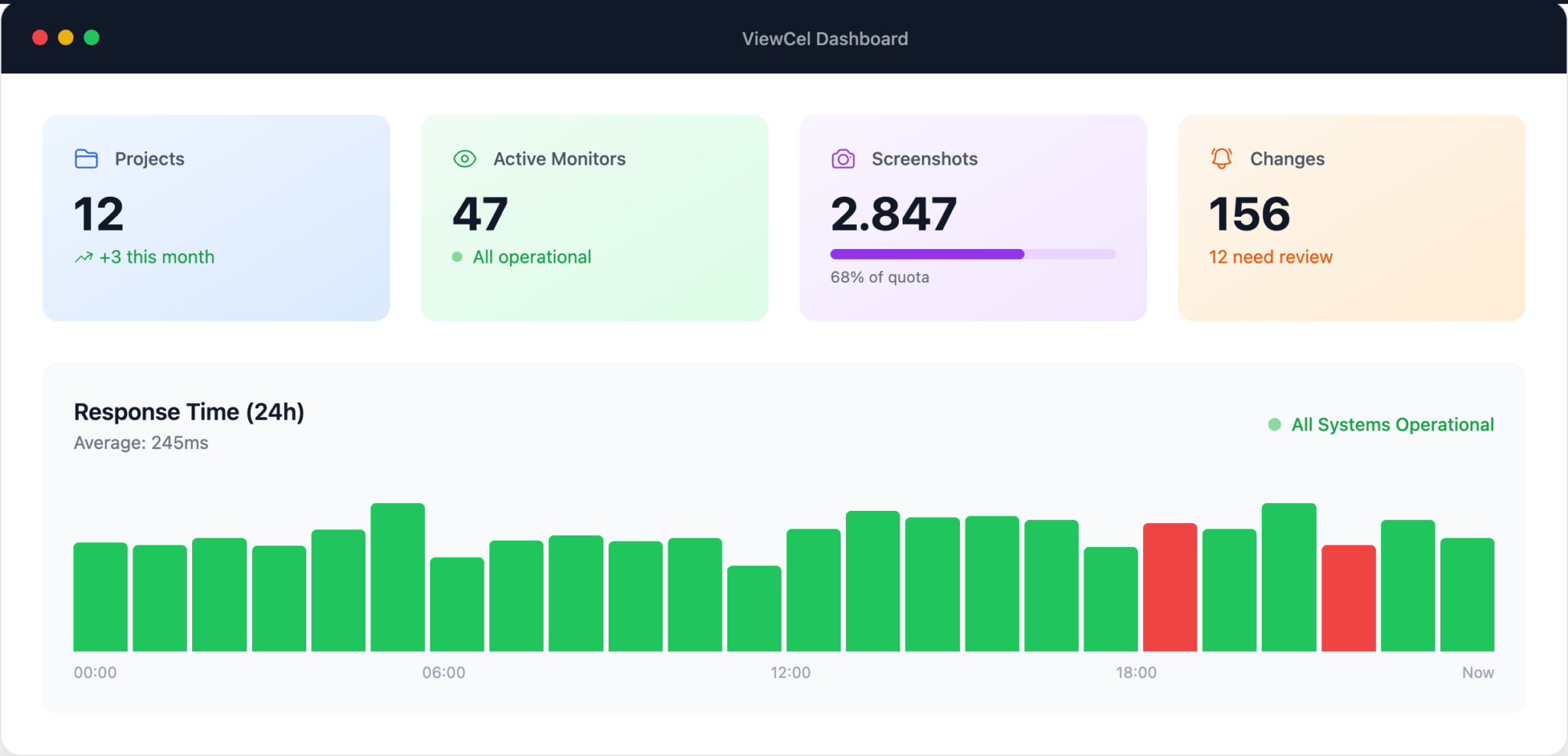 - API-First Design: Viewcel lässt sich komplett automatisieren. Integriere Monitoring direkt in deine CI/CD-Pipeline oder baue deine eigenen Dashboards darauf auf.